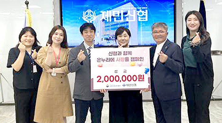 제민신협(이사장 고문화)은 지난 13일 신협사회공헌재단이 주관하는 '온누리에 사랑을 캠페인'을 통해 선정된 취약계층에 성금 200만원을 전달했다.