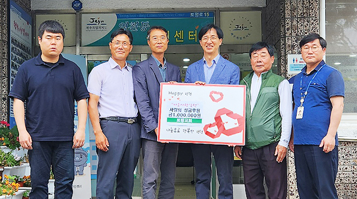 토평교회(목사 강영일)는 지난 17일 서귀포시 영천동주민센터(동장 이병진)를 방문해 영천동장애인지원협의회(회장 오학선)에 어려운 장애인들을 위한 사랑의 후원 성금 100만원을 전달했다.