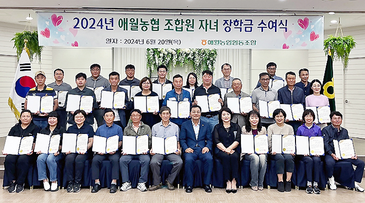 제주애월농협(조합장 김병수)은 지난 20일 농협 대회의실에서 '2024년 애월농협 조합원 자녀장학금 수여식'을 갖고 장학금 지원 대상자로 선정된 조합원 자녀 35명에게 3500만원을 전달했다.