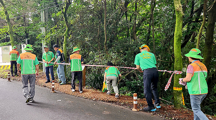 서귀포시 천지동지역자율방재단(단장 강국진)은 지난 21일 단원 12명이 참여한 가운데 천지동 관내 여름철 재난 취약 지구인 솜반천 등을 현장 방문해 재난안전선 설치 재확인과 집수구 정비에 나섰다.