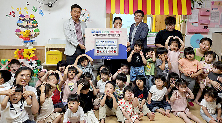 서귀포시 남원원광어린이집(원장 손영로) 원아와 학부모, 교직원 일동은 지난 17일 관내 어려운 이웃을 돕는 데 사용해 달라며 성금 123만원을 남원읍에 기탁했다.