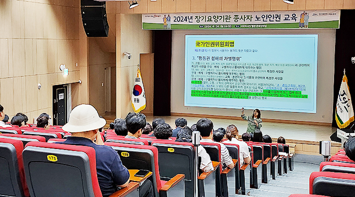 서귀포시는 지난 24일 노인 인권 보호 주간을 맞아 서귀포시청 1청사 별관 2층 문화강좌실에서 관내 장기요양기관 종사자를 대상으로 노인 인권 교육을 실시했다.