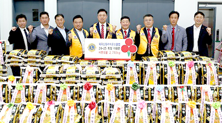 국제라이온스협회 354-G(제주)지구 제주드림라이온스클럽(회장 이광춘)은 지난 21일 제주드림라이온스클럽 지구회관에서 사랑의 쌀 2710㎏을 제주사회복지공동모금회(회장 강지언)에 기탁했다.