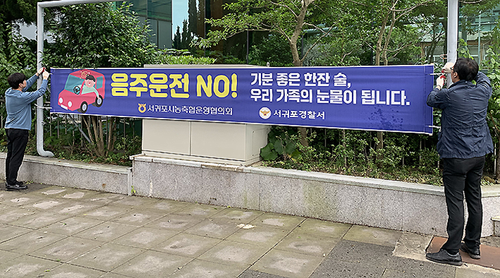 서귀포시농축협운영협의회(의장 고일학)와 서귀포경찰서(서장 오훈)는 농촌지역 농업인 안전을 위해 '교통법규 준수 홍보 캠페인'을 추진한다고 27일 밝혔다. 이번 캠페인으로 시 전역에 음주 운전, 무단 횡단 금지 현수막 100개를 설치하는 등 홍보 활동이 이뤄진다.