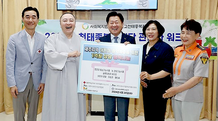사단법인 나누며하나되기가 제주지역 취약계층을 위해 1억원 상당의 물품을 후원했다. 제주특별자치도와 (사)나누며하나되기는 지난 26일 제주블랙샌즈호텔에서 도내 취약계층을 위한 후원물품 전달식을 열었다.
