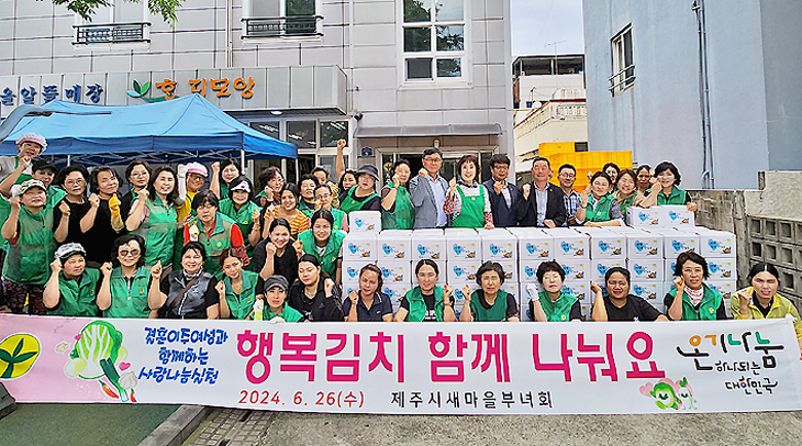 제주시새마을부녀회(회장 강길선)는 지난 26일 제주시새마을알뜰매장에서 읍면동새마을부녀회장 및 결혼이주여성 등 50명이 참석한 가운데 경제적·신체적으로 김치를 해 드실 여력이 없는 홀몸노인, 어려운 가정, 조손가정 등 지역내 소외계층 200가구를 대상으로 김치 500포기를 결혼이주여성과 함께 직접 담아 전달했다.