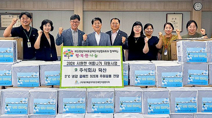 (사)제주특별자치도장애인지원협의회(회장 고관용)은 지난달 24일 32개 지역협의회 재가장애인 가정에 '시원한 여름나기 사업'을 위한 3℃ 냉감 쿨패드 323개를 전달했다.