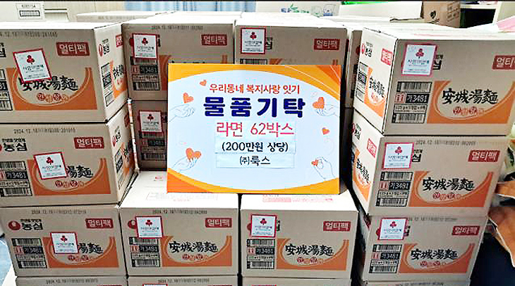 전기조명 업체 (주)룩스(대표 박은경)는 지난달 27일 관내 어려운 이웃을 돕기 위해 200만원 상당의 라면 496개를 제주시 이도2동(동장 한재영)에 기탁했다.