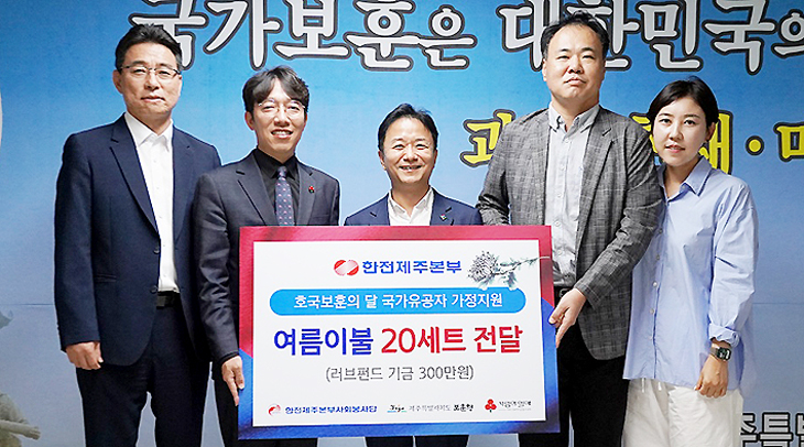 한국전력공사 제주본부는 지난달 28일 제주특별자치도 보훈청을 방문해 여름 이불 20채를 제주사회복지공동모금회(회장 강지언)에 기탁했다.