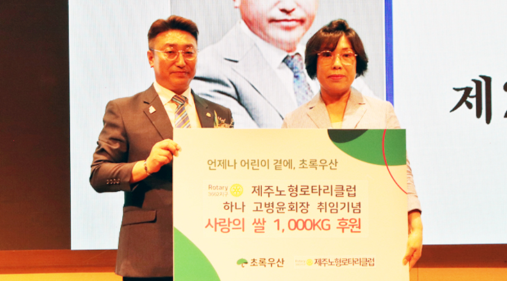 국제로타리3662지구 제주노형로타리클럽(회장 고병윤)은 지난달 28일 메종글래드제주에서 초록우산 제주지역본부(본부장 변정근)에 쌀 1000㎏을 전달했다.
