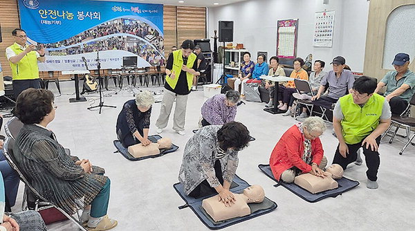 이날 행사에서는 아파트 화재 피난행동 요령과 심폐소생술, 보이스피싱 예방, 어르신 보행자 교통사고 예방교육은 물론 트로트 장구, 오카리나 연주, 이미용 봉사, 의료상담 등 다양한 재능기부가 이뤄졌다.