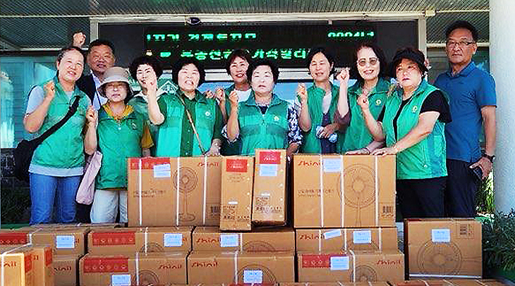 제주시 조천읍연합새마을부녀회(회장 채복자)는 지난 4일 바자회 수익금을 활용해 조천읍사무소에서 '2024 상반기 행복 1% 나눔 행사'를 열고 선풍기 42대를 관내 경로당에 기부했다.
