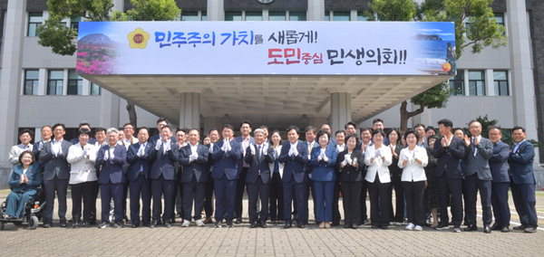 제주특별자치도의회(의장 이상봉)가 제12대 도의회 후반기 의정 목표를 담은 슬로건 '민주주의 가치를 새롭게! 도민중심 민생의회!!'를 내걸었다.