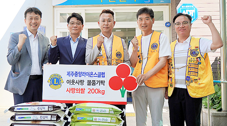 국제라이온스협회 354-G(제주)지구 제주중앙라이온스클럽(회장 현기종)은 지난 4일 삼양동(동장 고상익) 주민센터에서 제주사회복지공동모금회에 사랑의 쌀 200㎏을 기탁했다.