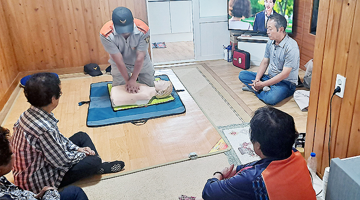 화북의용소방대(대장 강재천)는 최근 해녀의 고령화와 심정지 등으로 인한 안전사고가 지속적으로 발생하고 있음에 따라 제주시 삼양어촌회관에서 현직 해녀들을 대상으로 심폐소생술 응급처치 교육을 실시했다.