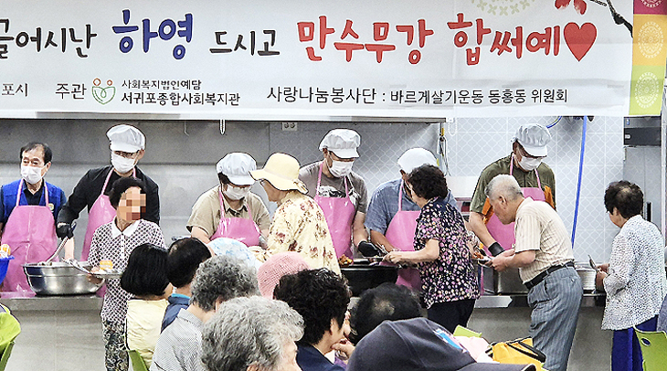 바르게살기운동동홍동위원회(위원장 김대성)는 지난 8일 위원 20여 명이 참여한 가운데 경로식당 무료 급식 봉사 활동을 진행했다.