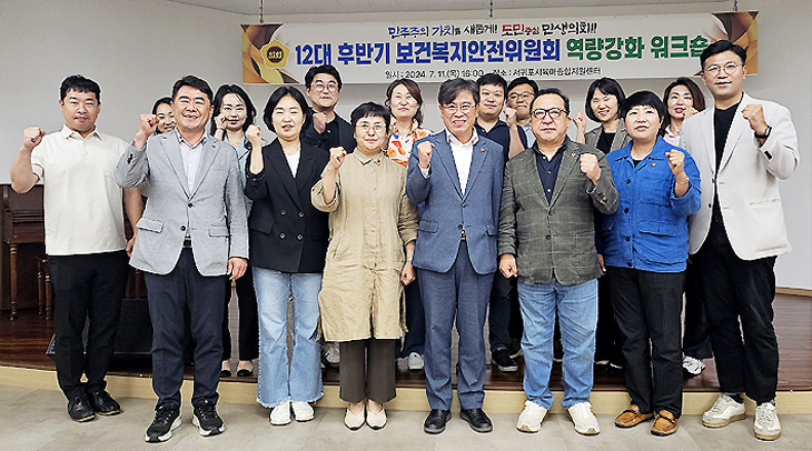 제주도의회 보건복지안전위원회(위원장 현길호)는 지난 11일 서귀포시육아종합지원센터에서 의정역량 강화를 위한 워크숍을 개최했다. 제12대 후반기 보건복지안전위 활동 방향을 모색하기 위해 마련된 이번 워크숍에는 현길호 보건복지안전위원장을 비롯해 상임위 위원, 전문위원실 직원이 참여했다.