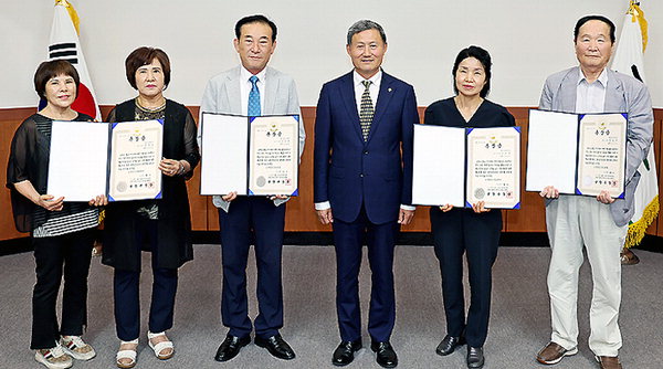 [한라일보] 김완근 제주시장은 지난 12일 시청 본관 회의실에서 6·25전쟁 참전 유공자인 고(故) 한헌섭 중사 유족에게 충무무공훈장을 전수했다. 이어 고 신윤택 소위, 고 부윤찬 일병, 고 진도호 상병의 유족에게 화랑무공훈장을 각각 전수했다.