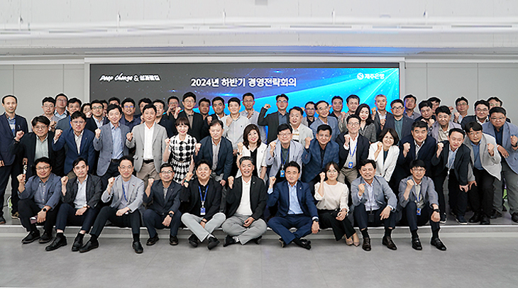 제주은행(은행장 박우혁)은 지난 12일 본점 대강당에서 임원, 영업점장, 본부 부서장 등 60여 명이 참석한 가운데 '2024년도 하반기 경영전략회의'를 개최했다.