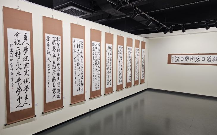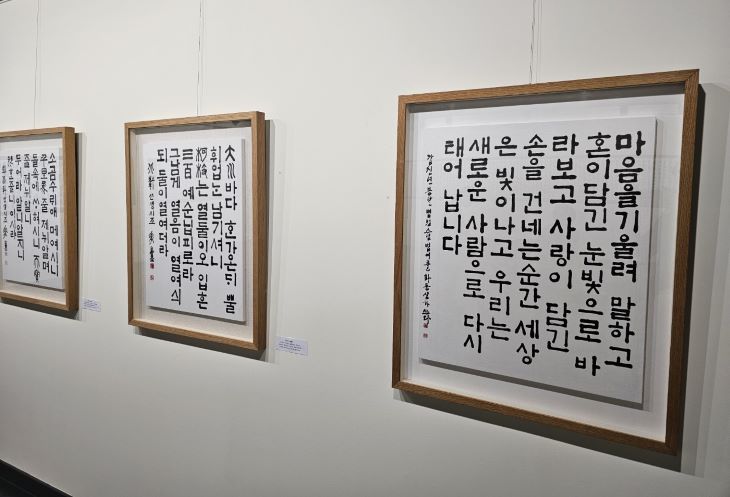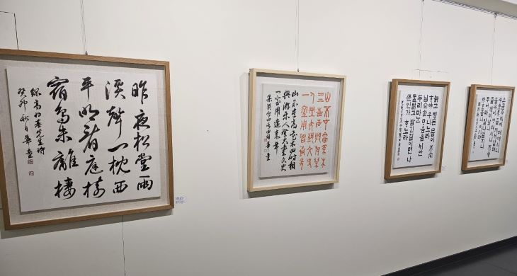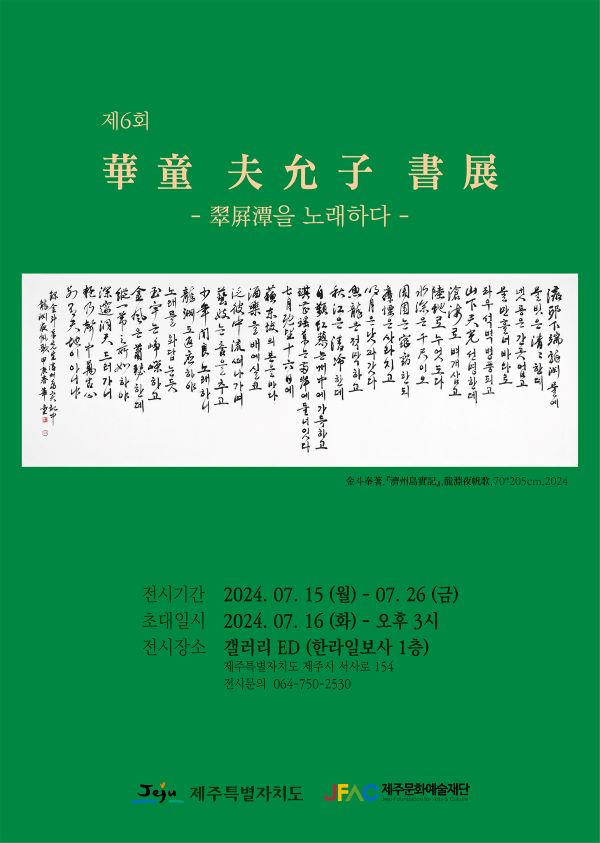 한라일보 갤러리ED에서 15일부터 선보이고 있는 화동 부윤자 서전 '취병담을 노래하다' 전경.