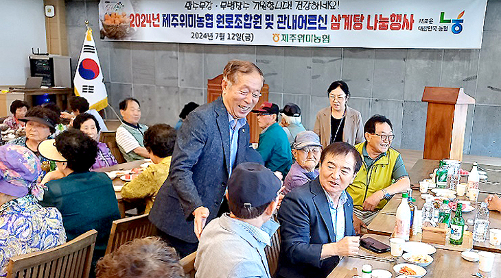 제주위미농협(조합장 현재근)은 지난 12일 지역 내 원로조합원들과 지역 내 어르신 200여 명을 모시고 삼계탕 나눔행사를 진행했다.