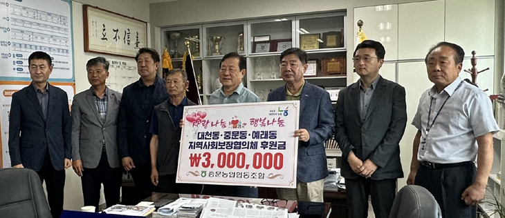 중문농협(조합장 김성범)은 지난 12일 대천동, 중문동, 예래동 지역사회보장협의체에 각각 100만원씩 총 300만원의 후원금을 전달했다.