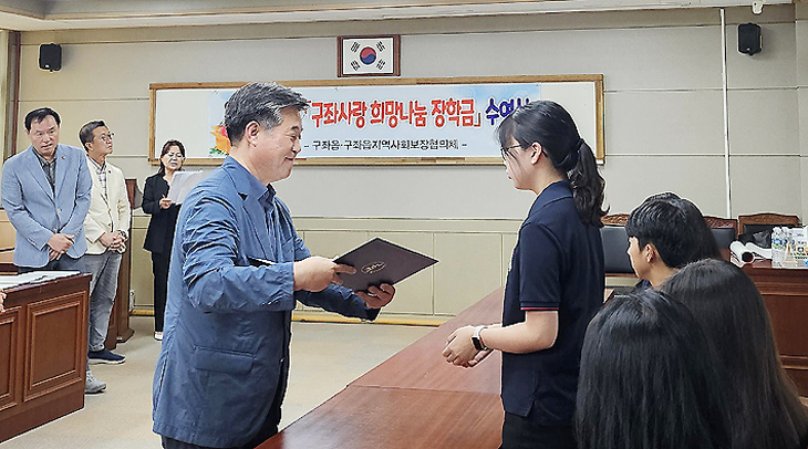 제주시 구좌읍(읍장 오상석)은 지난 16일 '구좌사랑 희망나눔 장학금' 수여식을 열어 지역 내 중·고등학생 20명에게 1인 50만원의 장학금과 장학증서를 수여했다.