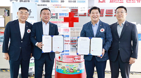 [한라일보] 대한적십자사제주도지사(회장 정태근)는 18일 로그인렌트카(대표 강동훈)와 함께 사회공헌 업무협약을 체결하고 모금함 설치를 진행했다.
