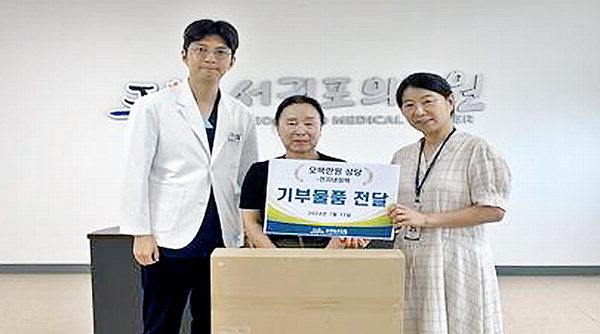 [한라일보] 제주특별자치도 서귀포의료원(원장 박현수)은 지난 17일 익수 사고로 치료 후 퇴원한 환자 강 모 씨로부터 500만원 상당의 기부 물품을 받았다고 18일 밝혔다. 기부 물품은 전자 네임텍으로 오는 12월 준공을 앞둔 급성기 신관 입원 병실에 설치될 예정이다.