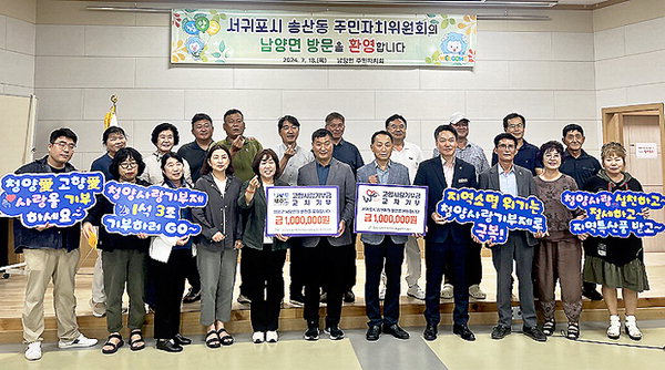 [한라일보] 서귀포시 송산동주민자치위원회(위원장 한예존)와 충남 청양군 남양면 주민자치회(회장 강민희)는 지난 18일 고향사랑기부제 상호 기부를 통해 100만원을 서로 기부하고 상생 발전을 다짐했다.