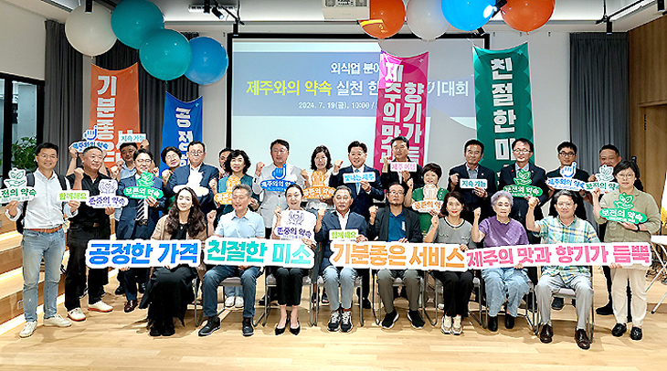 이날 참여한 도내 외식업계 대표와 종사자들은 ▷기분 좋은 서비스 제공 ▷친절한 미소로 손님맞이 ▷공정한 가격 책정 ▷제주의 맛과 향기를 듬뿍 담은 음식 제공 등을 실천할 것을 선언했다.