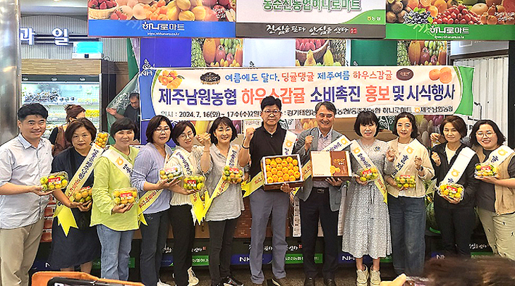 제주남원농협(조합장 고일학)은 지난 16~17일 경기태안농협, 하남농협, 동춘천농협 하나로마트 일원에서 고향주부모임(회장 김경자), 농가주부모임(회장 김희숙)과 함께 '딩귤댕귤 제주여름 하우스감귤' 소비지 판촉행사를 진행했다.