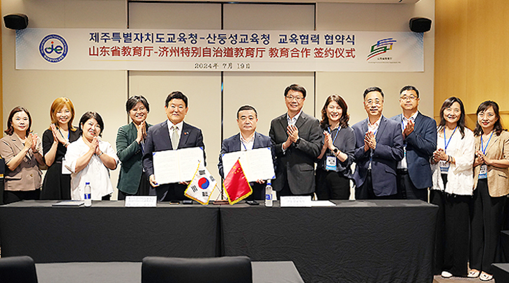 제주특별자치도교육청은 지난 19일 신화월드 메리어트관에서 열리는 '2024 한·중 미래발전 제주-산둥 교류주간' 행사에서 교육분야 교류협력 활동에 참가해 산둥성교육청과 교육교류 협력 협약을 체결했다.