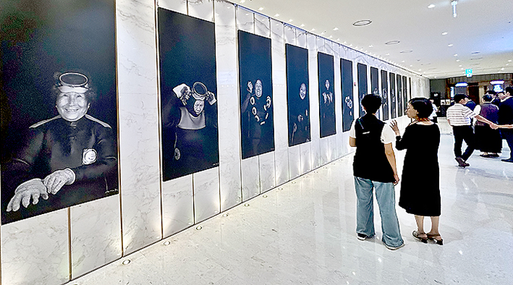 워크숍이 끝난 뒤에는 올해 말까지 이어지는 제주해녀문화예술연구협회의 제주해녀 사진전 개막식이 진행됐다. 이 전시에는 사진가인 양종훈 이사장의 해녀 사진 중에서 대형 크기로 출력한 14점이 걸렸다.