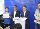 더불어민주당 소속 강성의(사진 왼쪽부터), 하성용, 송창권, 양영식 제주도의원은 이날 도의회 기자실에서 기자회견을 열고 국민의힘 태영호 전 국회의원의 민주평통 사무처장 임명에 항의하며 사직서를 제출하겠다고 밝혔다.