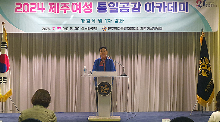 민주평화통일자문회의 제주지역회의(부의장 고충홍) 여성위원회(위원장 강옥선)는 지난 23일 제주시내 아스타호텔에서 여성자문위원과 지역사회 여성리더 등 교육과정을 신청한 70여 명을 대상으로 '2024 제주여성 통일공감 아카데미' 개강식 및 1차 강연을 개최했다.