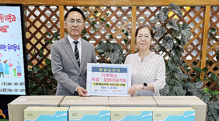 제주영락종합사회복지관(관장 이상언)은 희망브리지 전국재해구호협회(회장 송필호)의 지원으로 최근 폭염과 감염병에 취약한 재난취약계층 100가구에 폭염·감염 대응 키트를 전달했다.