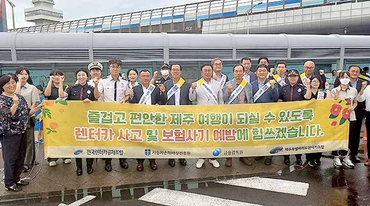 제주특별자치도 렌터카조합(이사장 강동훈)은 전국렌터카 공제조합, 제주특별자치도 교통단체 연합회와 함께 지난 25~26일 제주국제공항 렌터카 하우스 일원에서 관광객을 대상으로 교통안전 캠페인과 함께 제주사랑 기부제 동참을 홍보했다.
