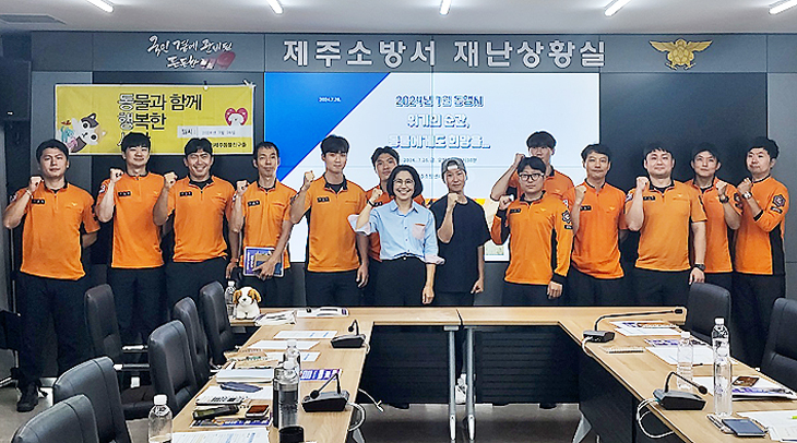 (사)제주동물친구들(대표 김미성)은 지난 26일 제주소방센터에서 119대원들을 상대로 '위기의 순간, 동물에게도 희망을'이라는 주제로 강의를 했다.