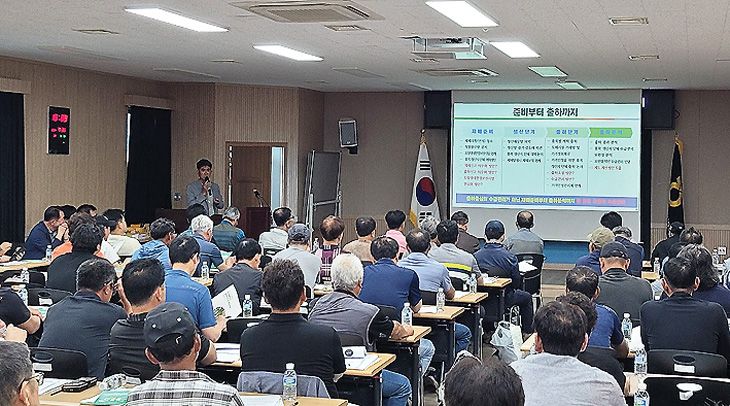 (사)제주농산물수급관리연합회(회장 강동만)와 제주농산물수급관리센터(센터장 고광덕)는 지난 26일 성산지역 월동무 회원 100여 명을 대상으로 수급안정 사업추진 설명회를 개최했다.