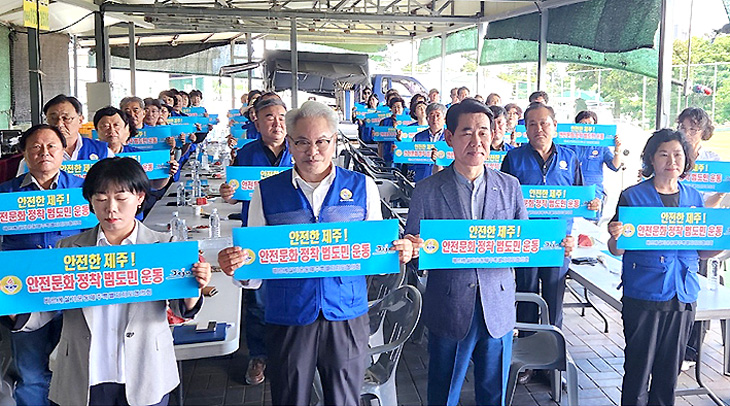 바르게살기운동 제주특별자치도협의회(회장 좌중언)는 지난 25일 제주시 화북동 거로마을운동장에서 임원 80여 명이 참석한 가운데 '안전한 제주, 안전문화 정착을 위한 결의 한마음대회'를 개최했다.