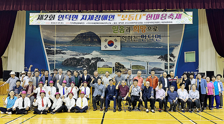 서귀포시 안덕면지체장애인분회(회장 성경관)는 지난 28일 안덕생활체육관에서 회원과 가족 150여 명이 참여한 가운데 '제2회 안덕면 지체장애인 '보듬다' 한마음 축제'를 개최했다.