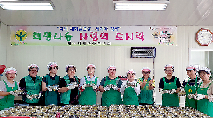 제주시새마을부녀회(회장 강길선)는 지난 23일 제주시새마을알뜰매장 급식실에서 읍면동새마을부녀회장 등 15명이 참석한 가운데 지역 내 취약계층 300명을 대상으로 건강한 여름나기를 위한 전복죽을 전달했다.