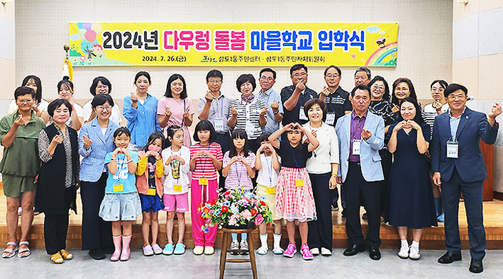 제주시 삼도1동주민센터(동장 송정심)와 삼도1동주민자치위원회(위원장 윤용팔)는 지난 26일 주민센터 3층 공감마루에서 '2024년 다우렁 돌봄 마을학교' 입학식을 개최했다.