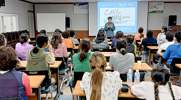 제주고산농협(조합장 고영찬)은 지난 26일 여성농업인 40여 명을 대상으로 '웃음으로 여는 행복한 세상' 치료 강의를 실시했다.