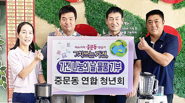 이날 중문동연합청년회 회원 등 지역 주민들은 각 가정에서 쓰지 않는 가전제품을 모아 기부했고 이는 도움이 필요한 어려운 이웃에게 전달됐다.