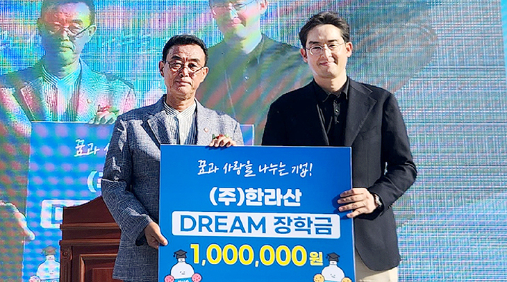 (주)한라산은 도내 지역인재 육성을 위한 '드림장학금' 기부 활동을 지속하고 있다.