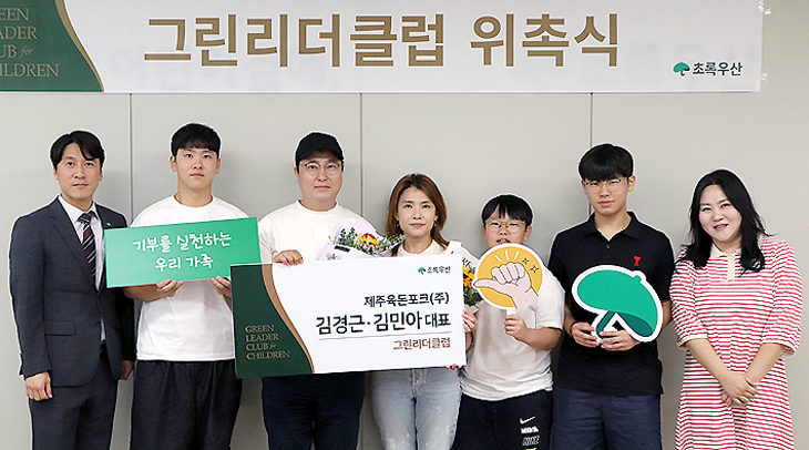 (주)제주육돈포크(대표 김경근·김민아)는 지난 25일 초록우산 제주지역본부(본부장 변정근)에서 진행하는 그린리더클럽에 가입했다.
