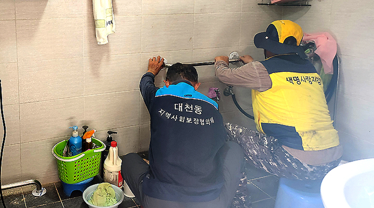 서귀포시 대천동지역사회보장협의체(공동위원장 윤용필, 윤세명)는 지난 1일 안전 취약계층인 노인·장애인 등 14가구의 낙상 사고를 예방하기 위해 '우리 집 맞춤형 안전바 설치' 사업을 실시했다.