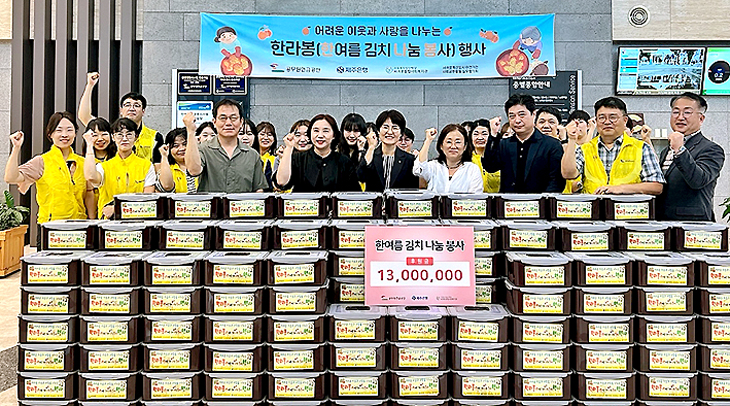 서귀포종합사회복지관(관장 강희정)은 지난 5일 공무원연금공단(이사장 김동극), 제주은행 서귀월드지점(지점장 고국진)과 함께 취약계층을 대상으로 한여름 김치 나눔을 진행했다.